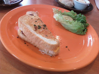 Afterward, we went to the Village Inn restaurant for lunch, where I ordered the Grown-Up Grilled Cheese (made with tomatoes and bacon). When it arrived, I was very pleasantly surprised to see their unique way of keeping that nasty pickle juice from getting on my sandwich and making the bread soggy. It made me very happy.