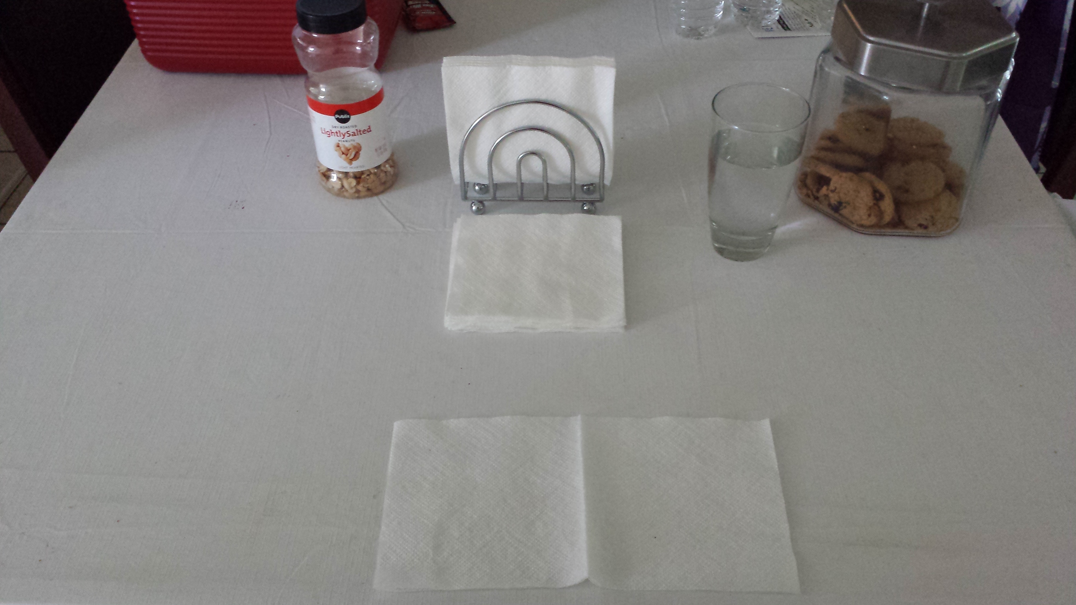 Fortunately, there’s a Target on my way home from work. We now have two napkin holders for the table. And I’ve asked Mother to start throwing her paper napkins away after every meal, but as these photos were taken this morning, you can see just how well that is working.